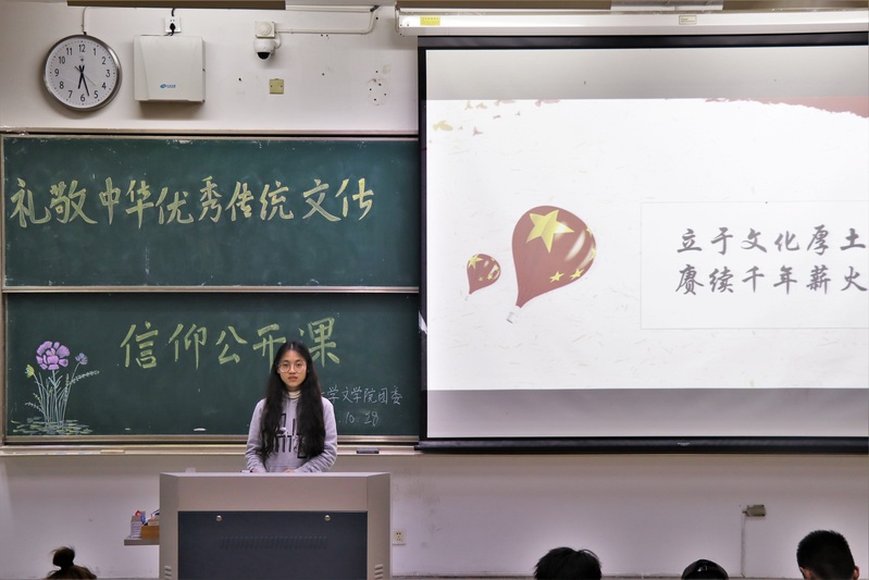 1029日晚7点,体育博彩 团委在4号楼205开展以“浸润传统文化,庚续民族精神”为主题的信仰公开课。