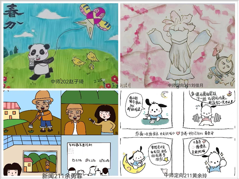 活动分为线上和线下两个赛道进行,共收到线上绘画作品15件、现场比赛6件。学院围绕作品的内容、立意及艺术表现等方面进行评比,汉语国际211班袁萌遥等3名同学荣获一等奖,历师212班吴晨洁等4名同学荣获二等奖,中师定向211班陈虹米等11名同学荣获三等奖。其中,一等奖代表作品《追梦途中》围绕转专业同学们所面临的人际关系焦虑、学习压力,描绘了积极融入、展现自我,脚踏实地追逐梦想的心理;二等奖代表作品《发芽——是自己的理想》表达要以坚强的意志战胜挫折,以获得自我锻炼和精神升华;三等奖代表作品《春分》寓情于景,既表现了春天的万象更新,也勉励自己在象征美好、希望的春天继续沉淀。参与者纷纷表示,通过绘画方式让自身获得了满足感、提升了自信心,从而以更加积极的姿态和更加阳光的心态对待日常的学习和生活。