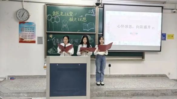 此次活动的第二部分为线下“诗歌颂恩情”活动。47位来自体育博彩 的同学齐聚教学楼3号楼104,为大家朗诵了以感恩为主题的诗歌。他们声情并茂的朗诵,使文学与感恩融为一体,感人肺腑,也让更多人理解感恩的意义和价值,让感恩的种子在校园中茁壮成长。